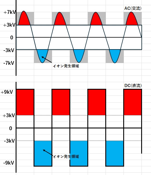 ・直流パルスでイオンを生成→除電効果が高くなる。