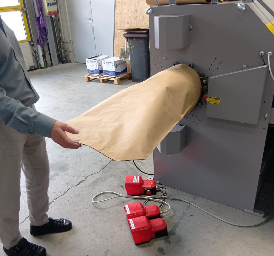 FillMatic社製RollPack機ではプレス機を使用しない圧縮ながら、パワフルにロール状圧縮することが可能です。
