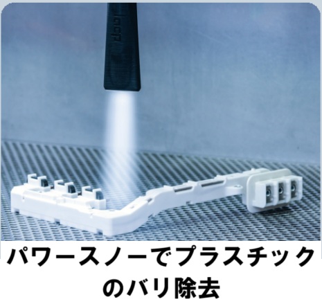 ◆樹脂製品のバリ取り、ネジ穴の切削加工クズのドライ洗浄、金属製品のコーティング除去、接着剤の残渣の除去 等の用途があります。