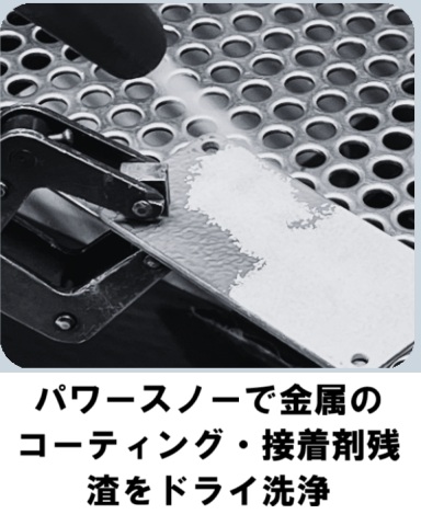 ◆兄弟機種のCO2スノージェット洗浄装置は、粉末状のCO2スノーを噴霧するのに対し、パワースノーは顆粒状のドライアイスを噴霧します。衝撃力・洗浄力が高くなります。